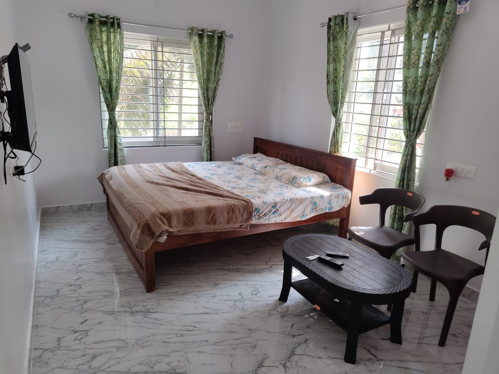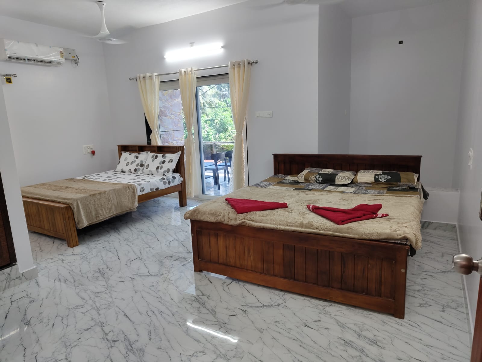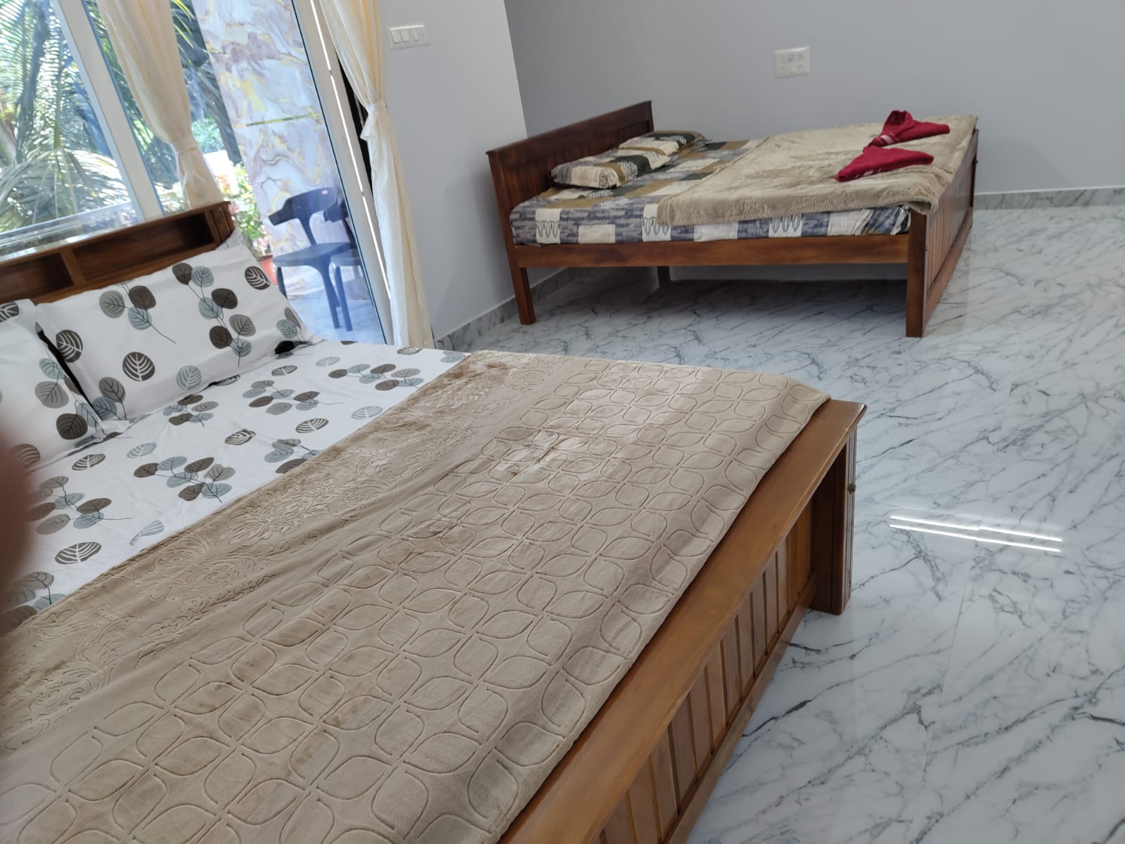 Our spacious, clean, and well-furnished rooms offer stunning views of Malpe Beach, 24/7 hot water, and a peaceful stay — perfect for relaxing after a day of coastal adventure.